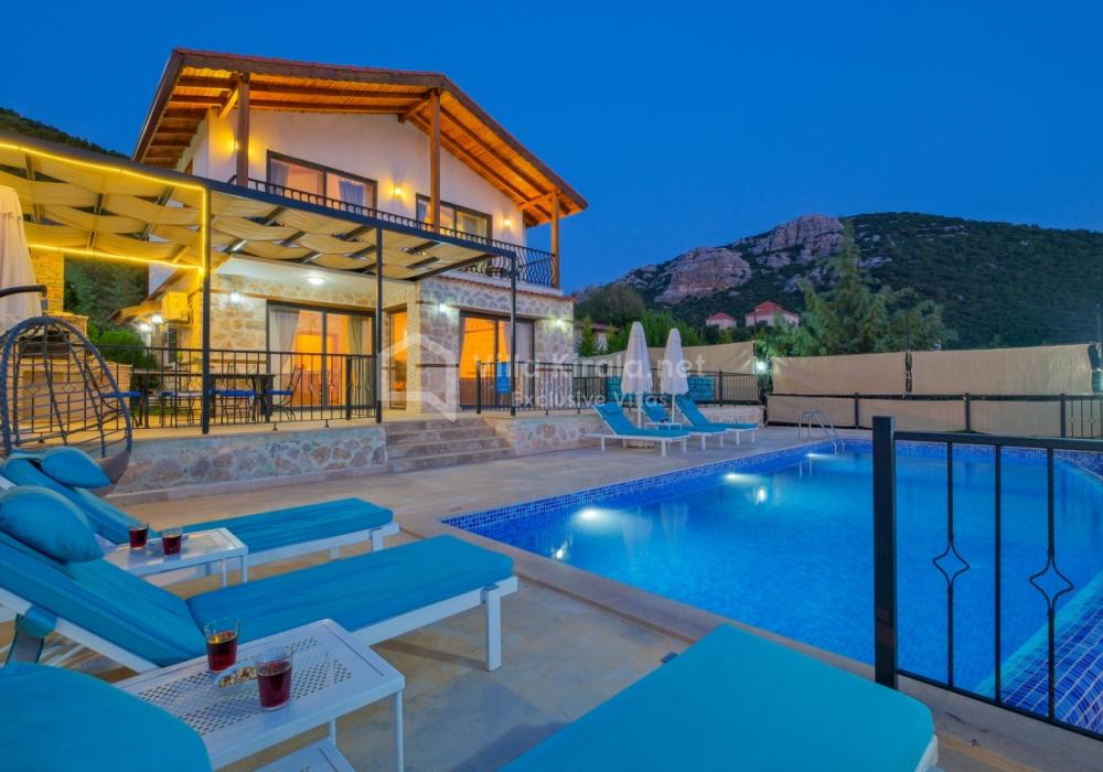 Villa Evmay, gelegen in der ruhigen und naturnahen Region Sarıbelen in Fethiye, bietet ein privates Urlaubserlebnis mit Platz für bis zu 6 Personen. Die Villa besticht durch ihre Steinarchitektur, moderne Annehmlichkeiten und den Blick auf die Natur. Villa Evmay ist die ideale Wahl für Familien und kleine Gruppen, die einen entspannten und angenehmen Urlaub suchen. Wenn Sie unvergessliche Erinnerungen in einer modernen Villa mit privatem Pool in Kalkan schaffen möchten, ist Villa Evmay die perfekte Option.