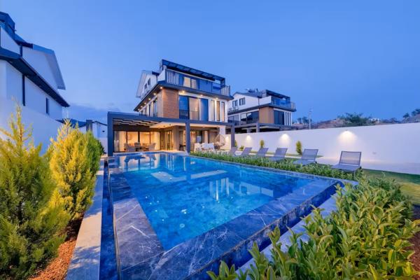Picturesque brand new 5 bedroom villa with private pool in Ovacik with a beautiful panoramic forest and mountain view. Nice well groomed garden. Villa has perfect location - its close to Oludeniz and Hisaronu with their entertainment and night life and to Fethiye center. Property De-sss-ion: Living area – 225 м2 Pool Size – 40 м2 Open plan kitchen and 2 living rooms with fireplace 5 Bedrooms 5 Bathroom Sauna & Jacuzzi Private Otopark 4 Floors Services: Linen and towels provided, Midweek cleaning , 24 hours help line in case of emergency, Daily Pool Cleaning and Garden Maintenance. Activities available locally: Paragliding, Quad bike safari, Jeep safari, Rafting, Diving, Microlite flights, Horse riding, Walking, Mountain biking, Boat trips, Parasailing, Fishing trips