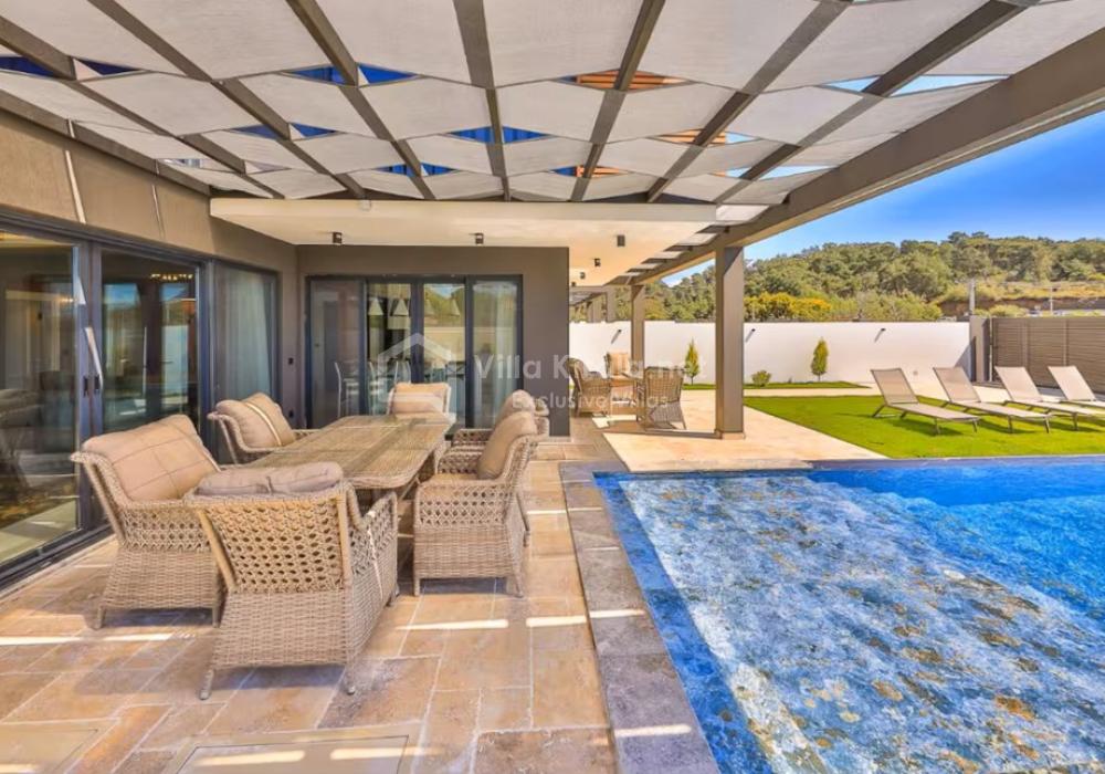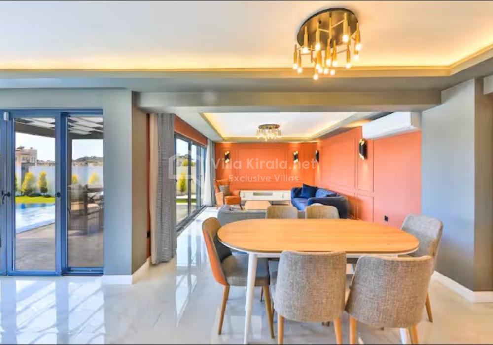 The interior and exterior areas of the villa are arranged to provide a comfortable holiday experience. With its spacious living areas, modern decoration, and bright rooms, guests can feel at home.