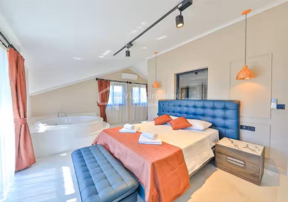 This stylish and modern villa located in Fethiye, one of the most popular holiday destinations in Muğla, is designed to offer a comfortable and enjoyable vacation experience. With its modern architecture and functional living spaces, the villa is an ideal accommodation option especially for families and small groups.