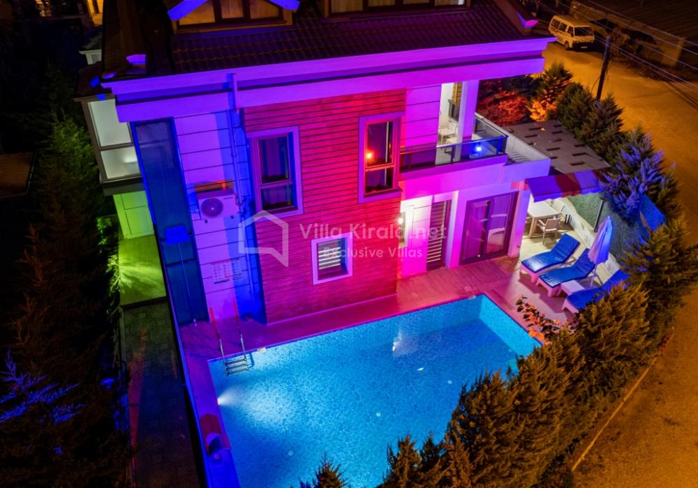 The villa is located in the Çalış area, one of the most popular regions in Fethiye, known for its stunning sunsets, cool summer breeze, and as a nesting area for Caretta Caretta sea turtles. With restaurants, bars, shopping, and transportation options, it is one of the most desirable locations in Fethiye. It is also close to Çalış Beach.