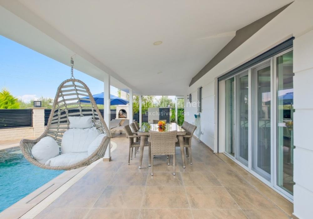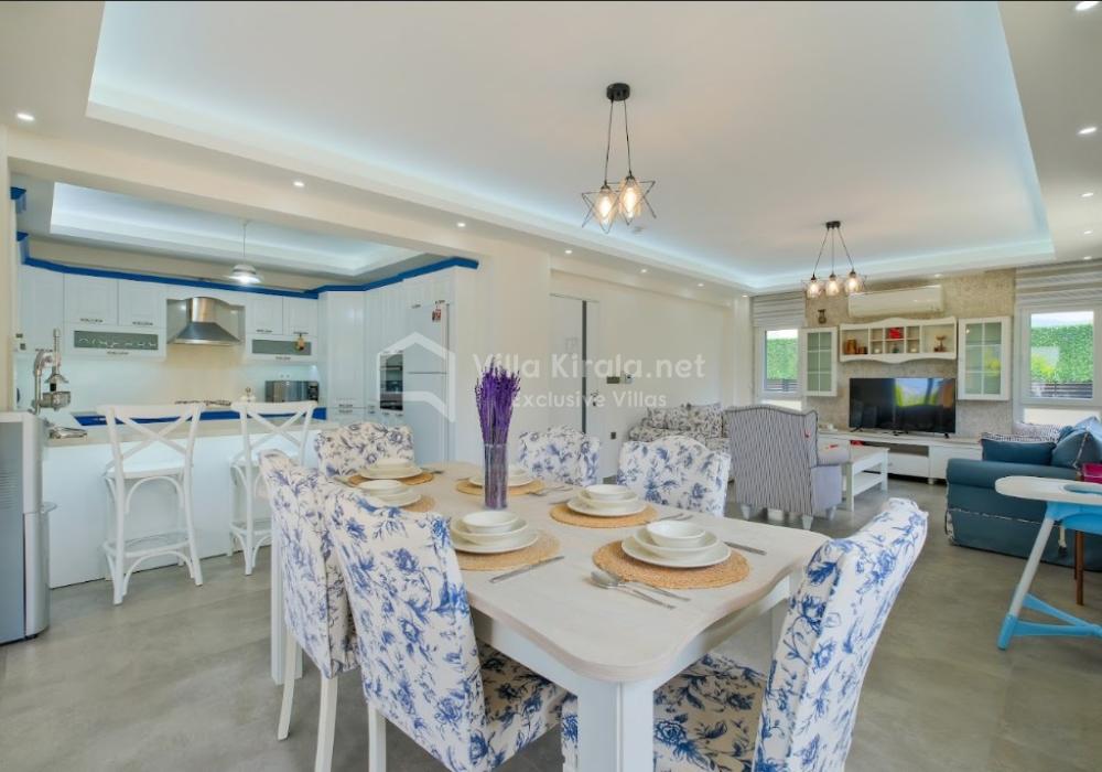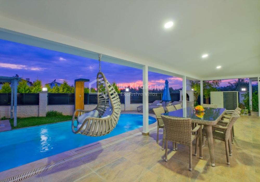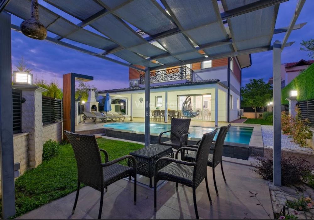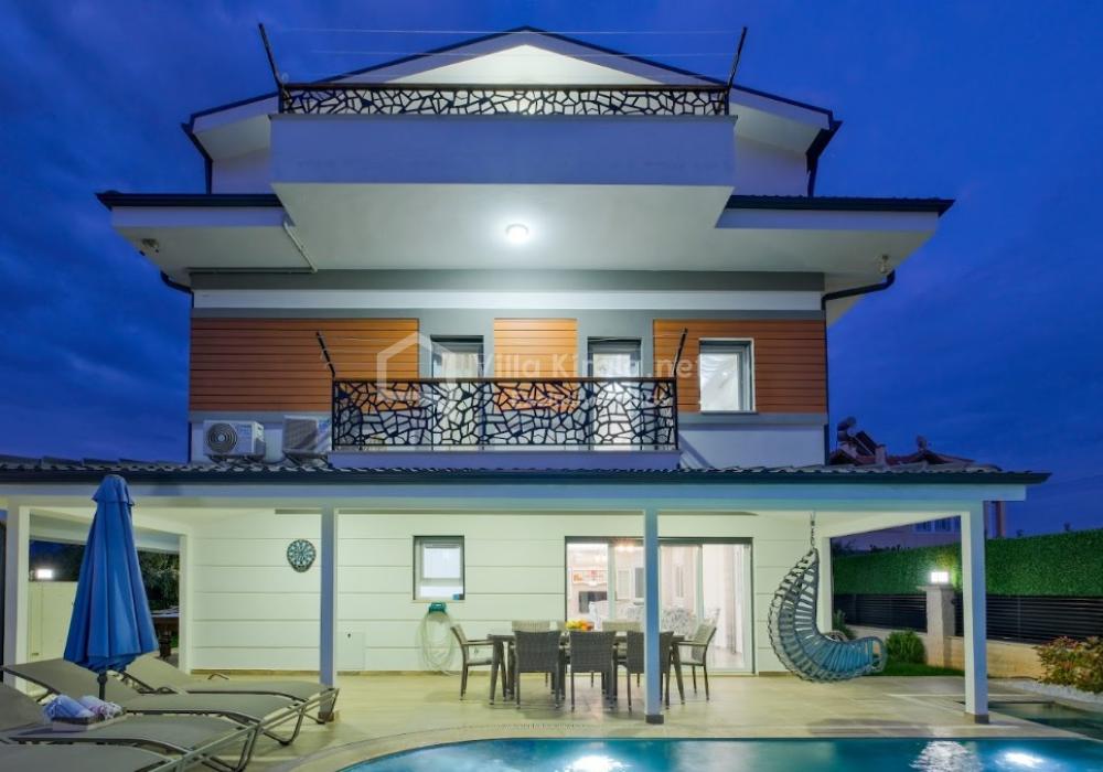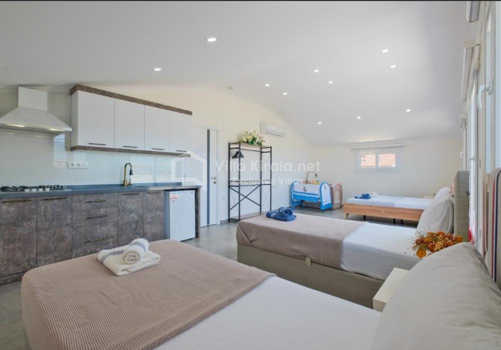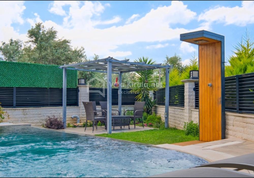 Our luxury villa, with a capacity of 9 guests, features 4 bedrooms and 4 bathrooms, offering a unique holiday experience that combines comfort, entertainment, and exclusivity. With its modern and stylish design, as well as spacious living areas, it is an ideal rental villa for large families and groups of friends.