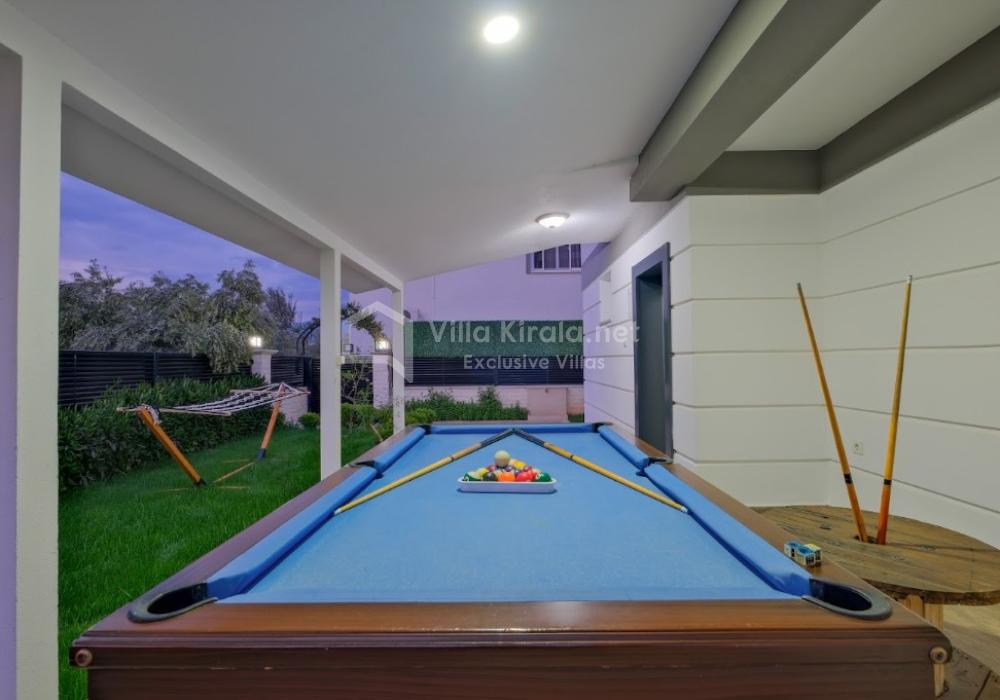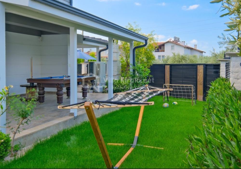 You can enjoy the private swimming pool throughout the day and prepare delightful meals in the barbecue area located in the spacious garden. Additionally, the garden includes a billiard table, darts, and a mini football field, ensuring a fun-filled holiday experience.