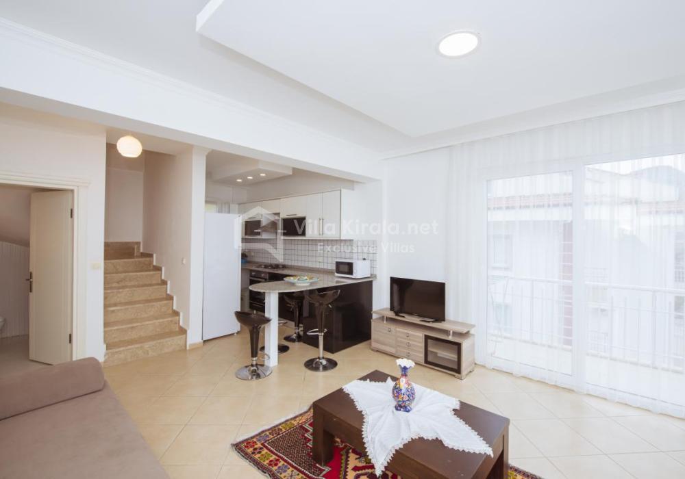 Nuevo y cómodo apartamento dúplex Olympia de 2 dormitorios en un complejo con una gran piscina compartida y un jardín bien cuidado con 8 apartamentos, en el centro de Hisaronu, famoso por su vida nocturna: muchos bares, pubs, discotecas, restaurantes ... Luna Park, karting, paseos a caballo - todo tipo de actividades que puedes encontrar en Hisaronu. Hay una parada de autobús frente al complejo; en 5 minutos se puede llegar a la famosa playa de Oludeniz y a la Laguna Azul.