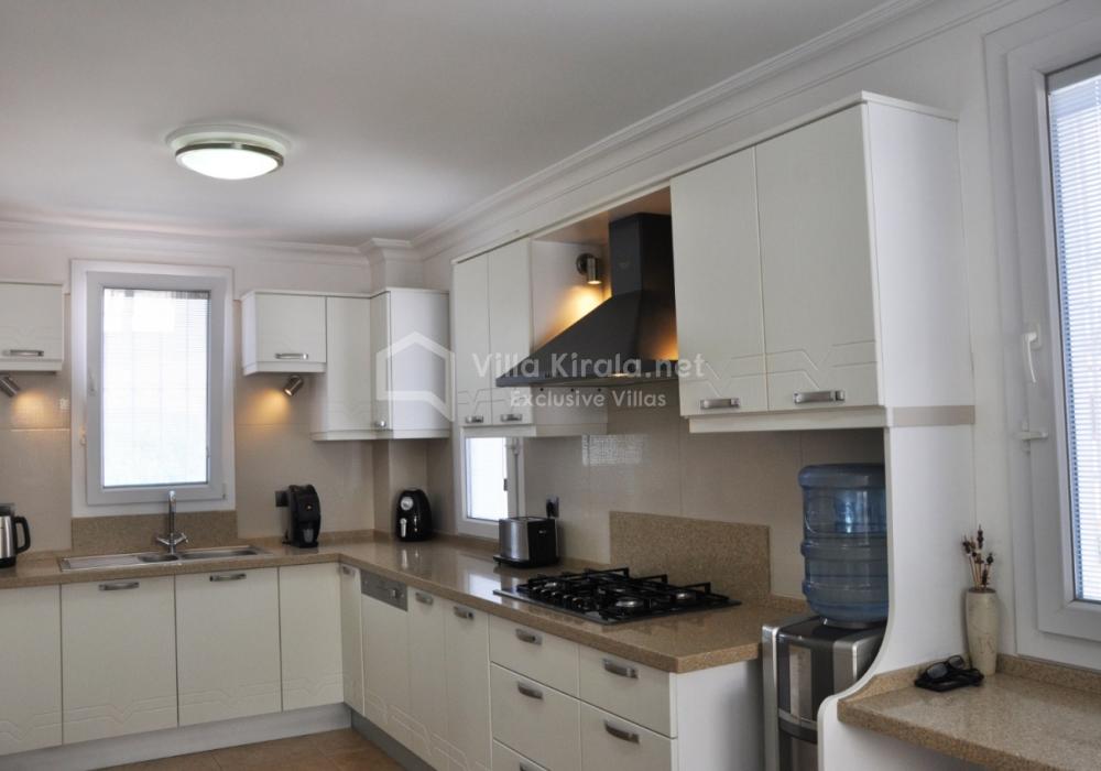 en Villa Sara; Hay 5 dormitorios y una cocina cerrada. La villa pasará momentos inolvidables con su parking privado para 2 coches, un gran jardín y una piscina privada.Hay nevera, lavavajillas, set empotrado, horno microondas, cafetera turca, aspiradora. , plancha y tabla de planchar. Hay una lavadora interior privada en la entrada de la villa y puede usar su secadora para secar su ropa en esta área.