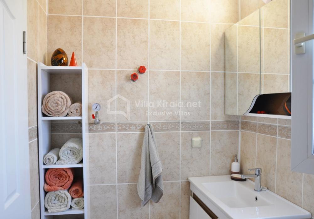 Arriba, además de la habitación doble con baño privado y TV, hay 2 habitaciones más con baños compartidos. Uno de estos dormitorios tiene 2 camas individuales + TV, y el otro dormitorio tiene 1 cama individual. Hay una caja fuerte en la villa.