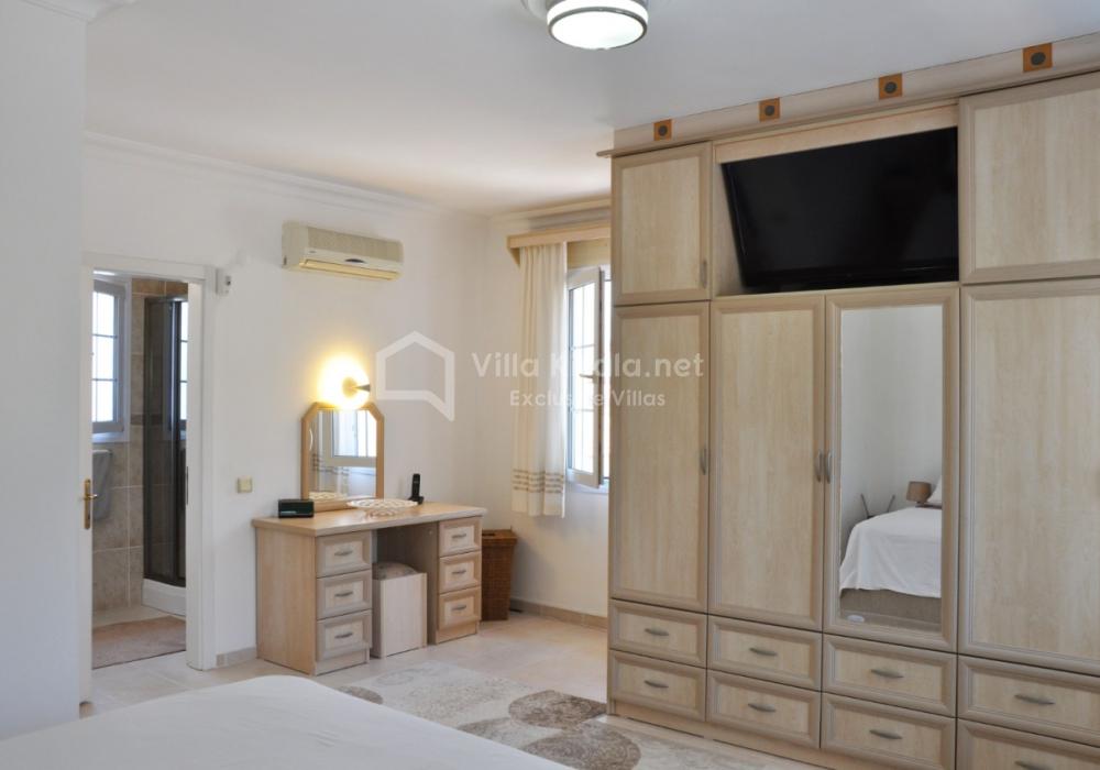 En plus de la chambre double avec salle de bain attenante et TV à l'étage supérieur, il y a 2 autres chambres avec salle de bain partagée. Une de ces chambres a 2 lits simples + TV et l'autre chambre a 1 lit simple. Il y a un coffre-fort dans la villa.
