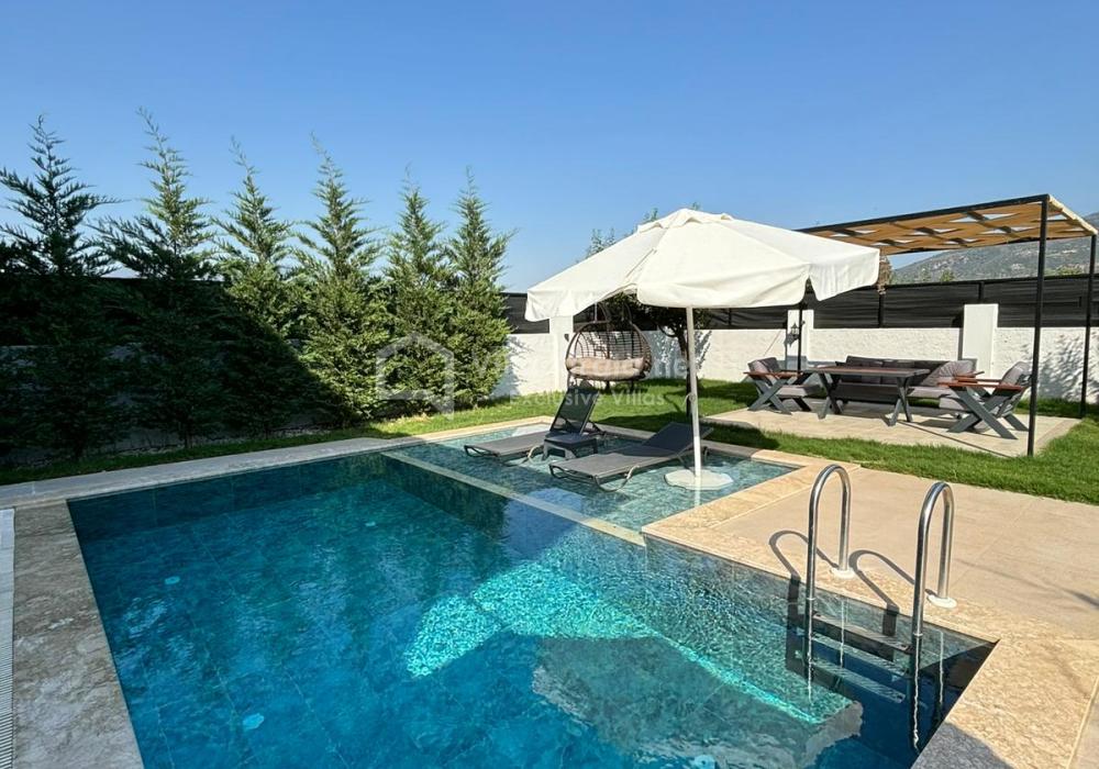 Villa Solo Elite Hide est une villa de vacances moderne et élégante située dans le quartier de Karaçulha à Fethiye. Avec une piscine privée entièrement protégée et 130 m² de surface habitable, la villa peut accueillir jusqu’à 6 personnes avec 3 chambres et 3 salles de bains, ce qui en fait un choix idéal pour les familles nombreuses et les groupes d’amis.