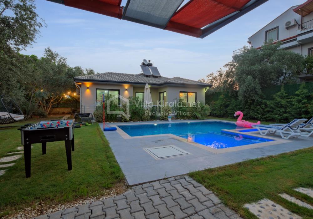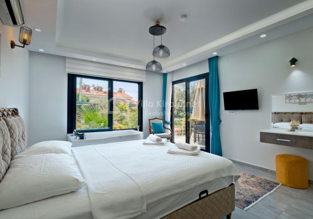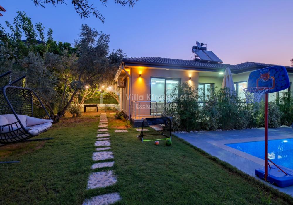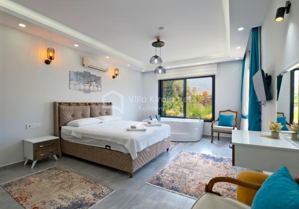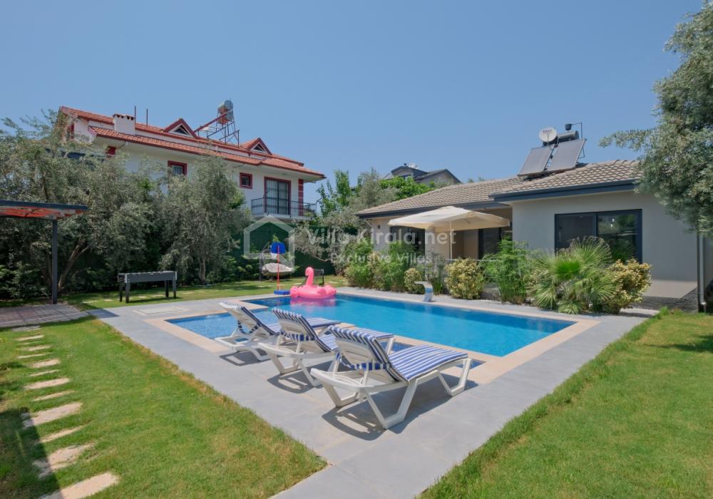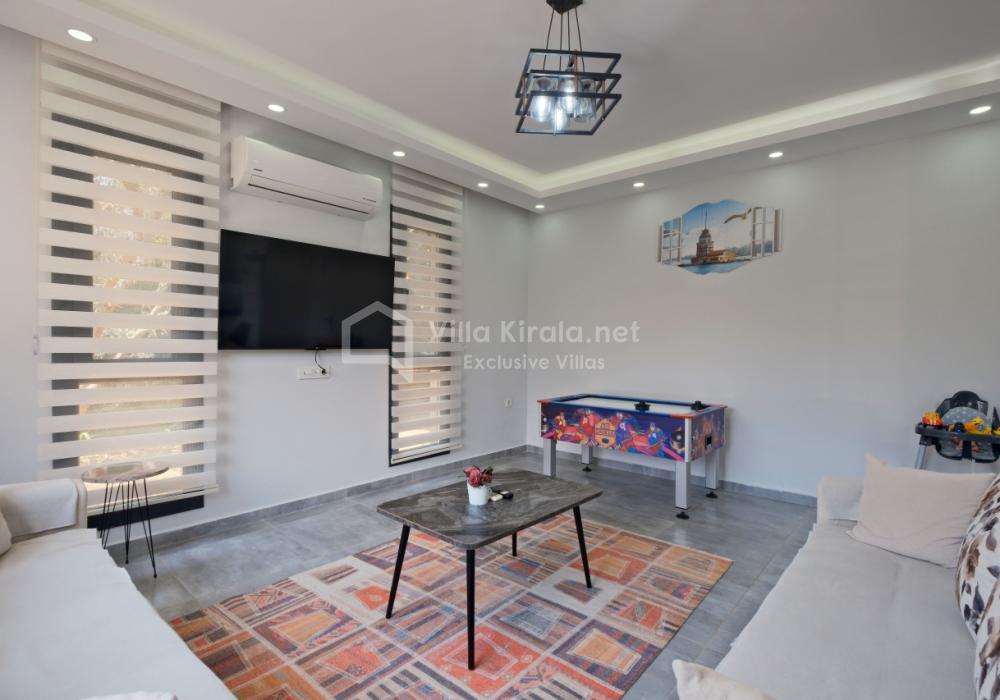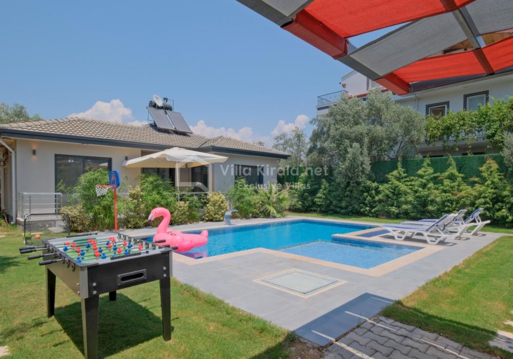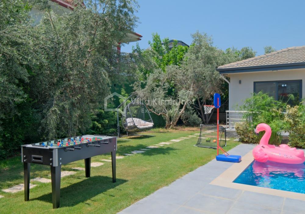 Située dans un cadre paisible et naturel à Fethiye, Villa Solo Tanus dispose de 2 chambres et peut accueillir jusqu’à 4 personnes, ce qui en fait le choix idéal pour les familles et petits groupes. Profitez de la piscine privée, de la piscine pour enfants et des espaces de loisirs dans le jardin (tennis de table, baby-foot, air hockey) pour des vacances animées. Le jacuzzi de la chambre principale et le sauna, ainsi que la cuisine moderne et les espaces de vie spacieux, combinent confort et luxe.