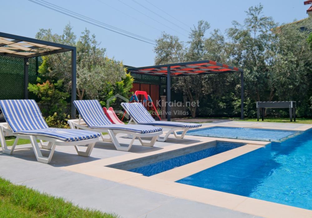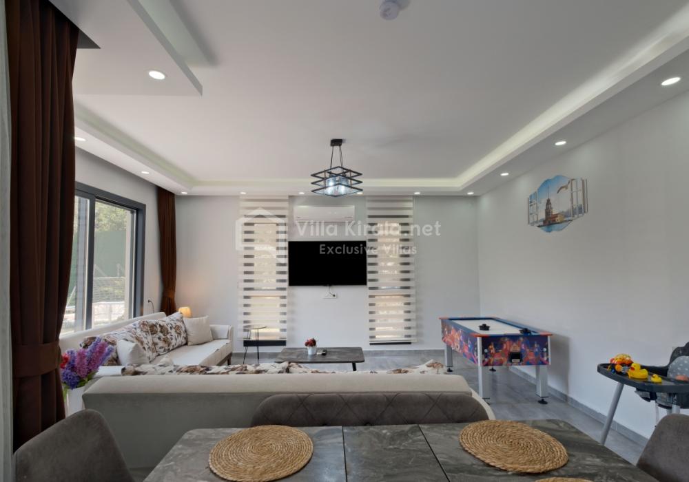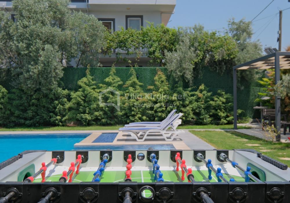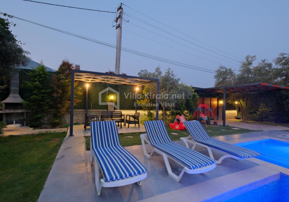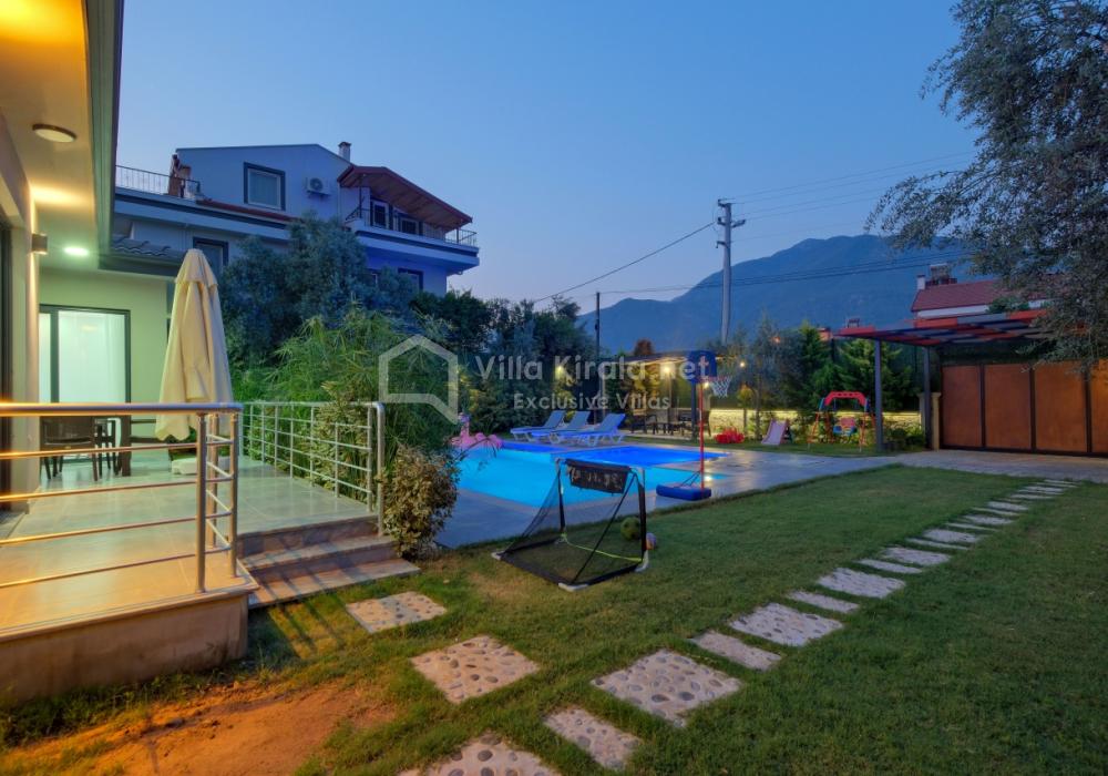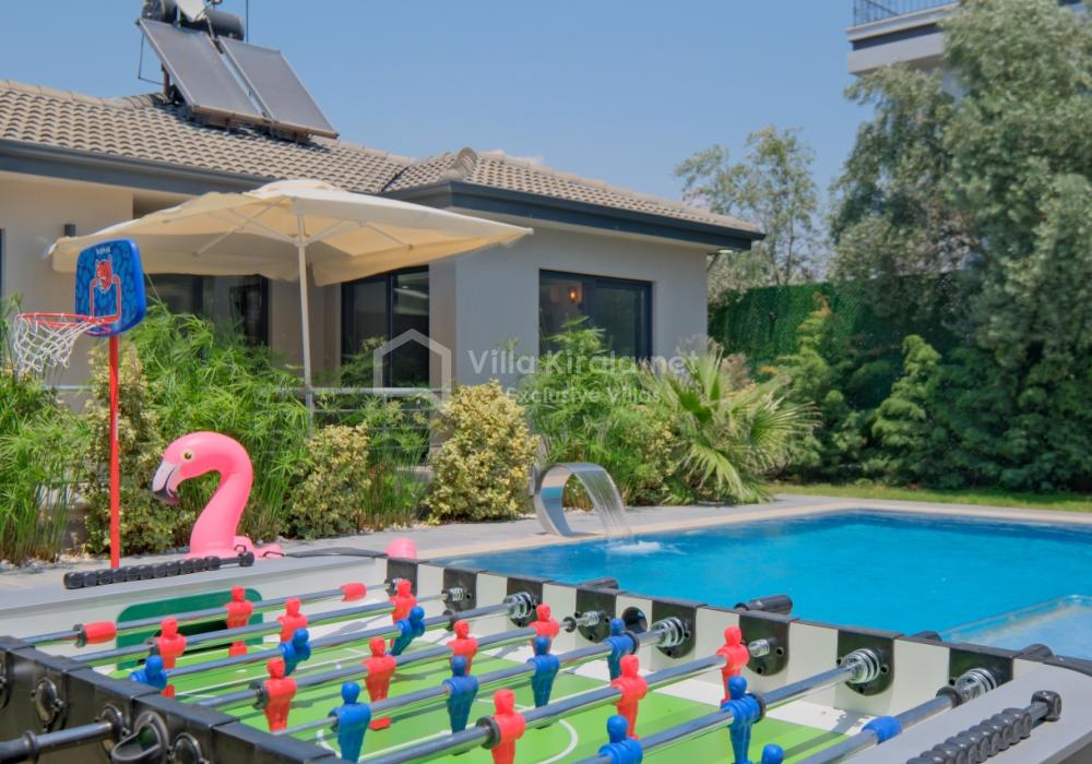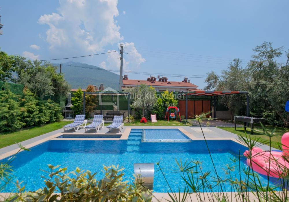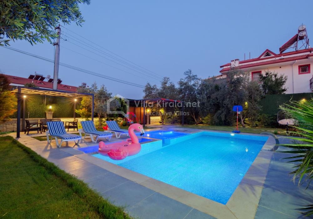 Située dans un cadre paisible et naturel à Fethiye, Villa Solo Tanus dispose de 2 chambres et peut accueillir jusqu’à 4 personnes, ce qui en fait le choix idéal pour les familles et petits groupes. Profitez de la piscine privée, de la piscine pour enfants et des espaces de loisirs dans le jardin (tennis de table, baby-foot, air hockey) pour des vacances animées. Le jacuzzi de la chambre principale et le sauna, ainsi que la cuisine moderne et les espaces de vie spacieux, combinent confort et luxe.