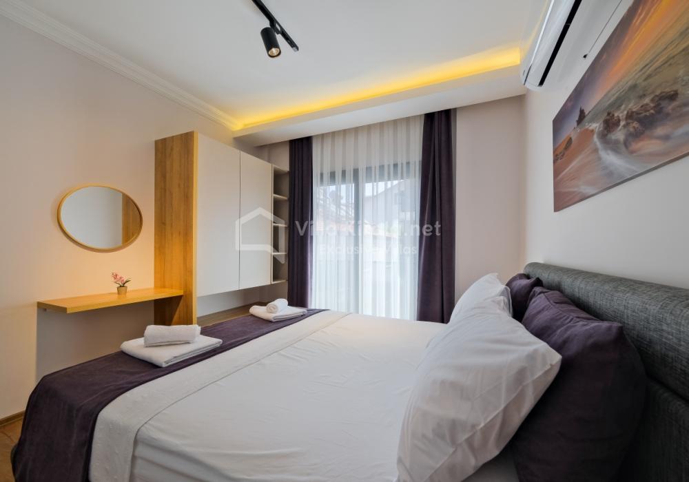 Квартира примерно в 9 км от моря, с быстрым доступом на машине к пляжам Олюдениз, Кабак Кой, Долине Бабочек и другим бухтам. Аэропорт Даламан в 50 км.