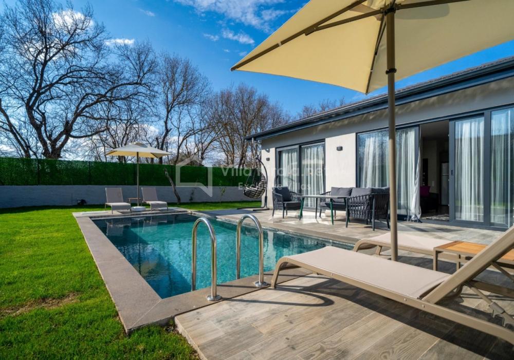 Villanın iç ve dış mekanı oldukça modern tasarlanmış olup havuz alanı korunaklıdır. Mahremiyetine önem veren misafirlerimiz için oldukça doğru bir tercihtir. Ebeveyn yatak odasında bulunan jakuzi ile doğa manzarası eşliğinde tüm yıl beklediğiniz keyfi yaşayabilirsiniz.