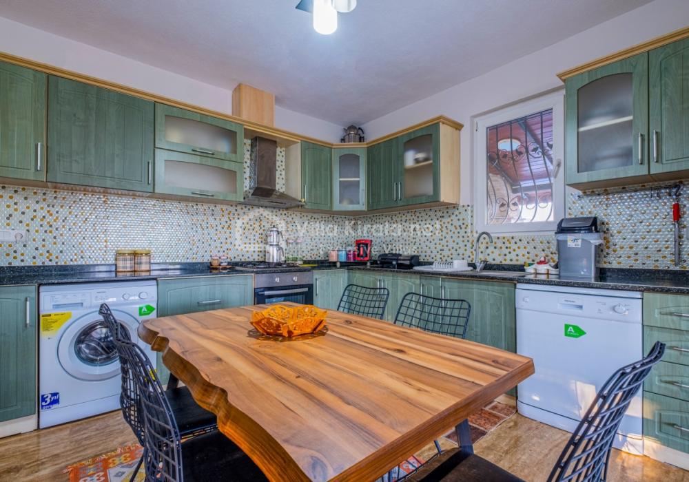 Mutfak : Amerikan mutfak içerisinde buzdolabı, çamaşır makinesi, bulaşık makinesi, fırın, ocak, yemek masası, yemek takımı, çatal-bıçak seti, tencere, tava, bardak ve diğer mutfak ekipmanları mevcuttur.