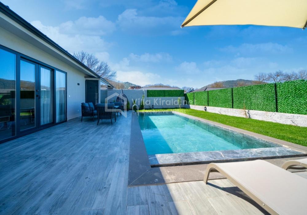 Villanın iç ve dış mekanı oldukça modern tasarlanmış olup havuz alanı korunaklıdır. Mahremiyetine önem veren misafirlerimiz için oldukça doğru bir tercihtir. Ebeveyn yatak odasında bulunan jakuzi ile doğa manzarası eşliğinde tüm yıl beklediğiniz keyfi yaşayabilirsiniz.