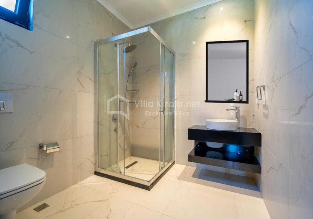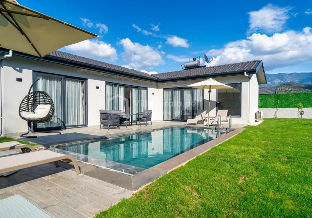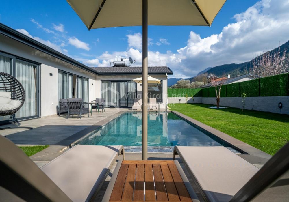 Villanın iç ve dış mekanı oldukça modern tasarlanmış olup havuz alanı korunaklıdır. Mahremiyetine önem veren misafirlerimiz için oldukça doğru bir tercihtir. Ebeveyn yatak odasında bulunan jakuzi ile doğa manzarası eşliğinde tüm yıl beklediğiniz keyfi yaşayabilirsiniz.