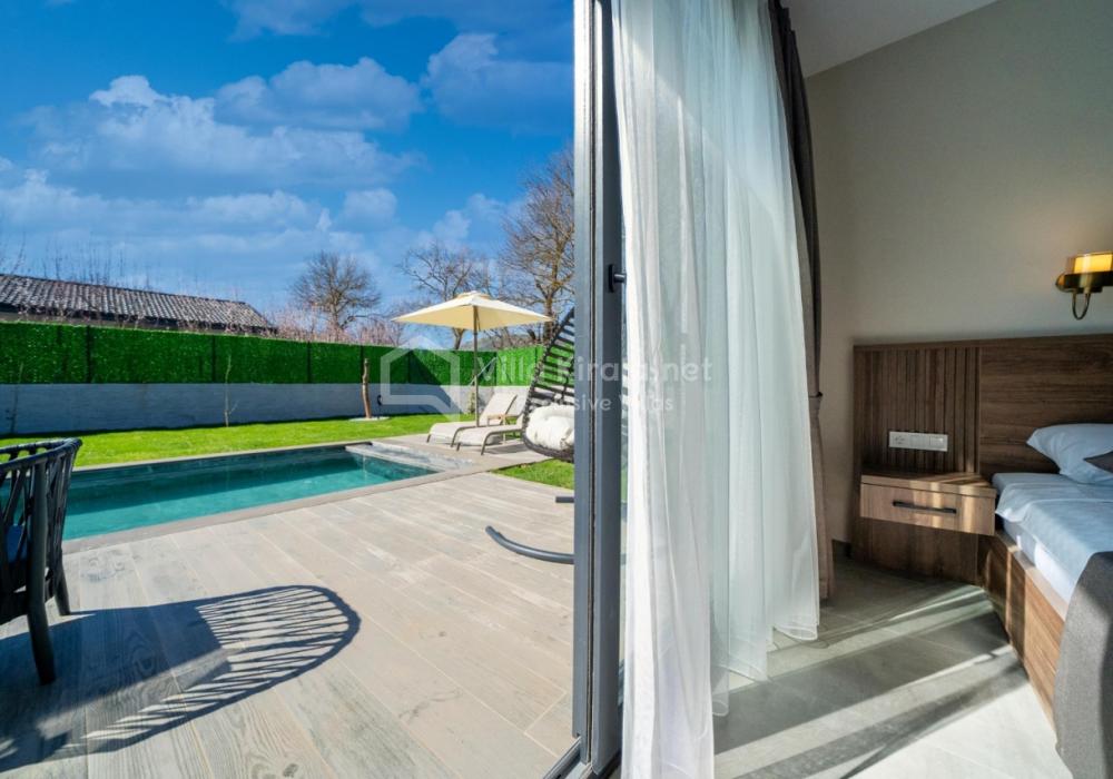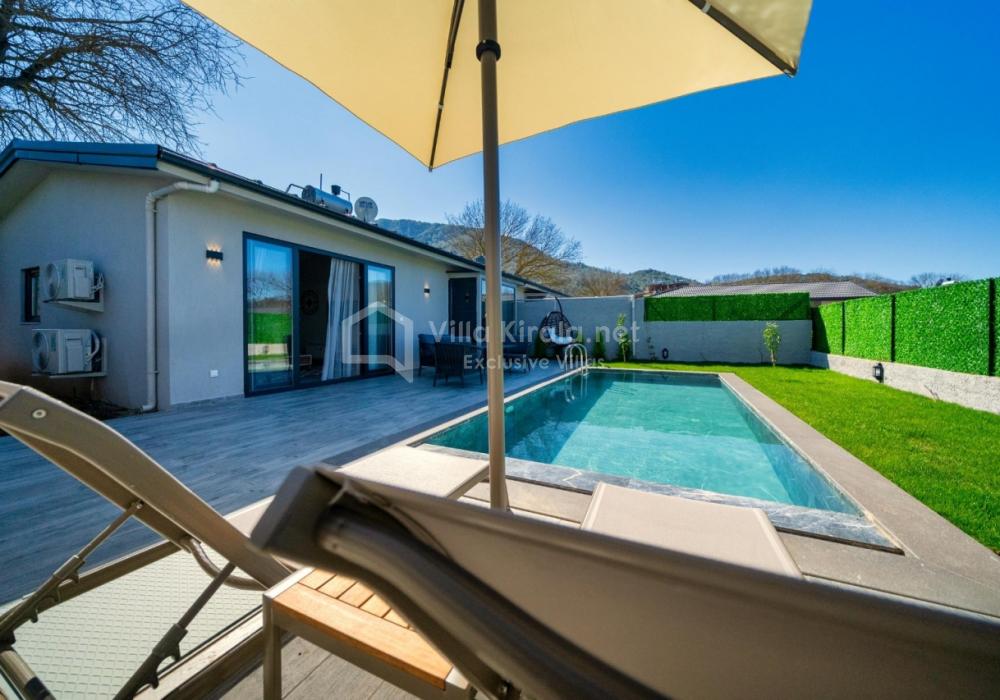 Villanın iç ve dış mekanı oldukça modern tasarlanmış olup havuz alanı korunaklıdır. Mahremiyetine önem veren misafirlerimiz için oldukça doğru bir tercihtir. Ebeveyn yatak odasında bulunan jakuzi ile doğa manzarası eşliğinde tüm yıl beklediğiniz keyfi yaşayabilirsiniz.