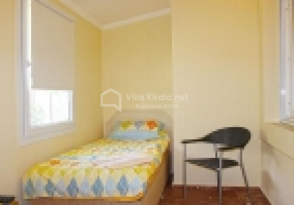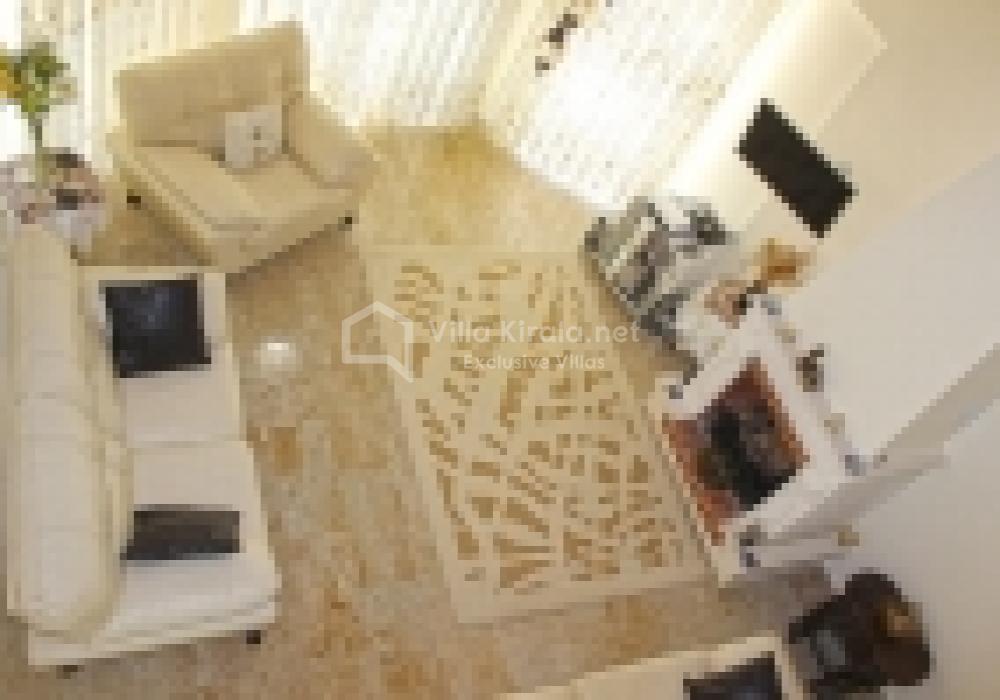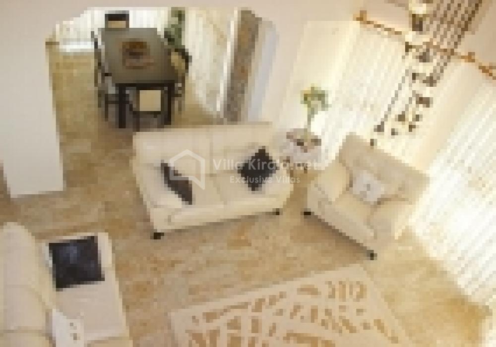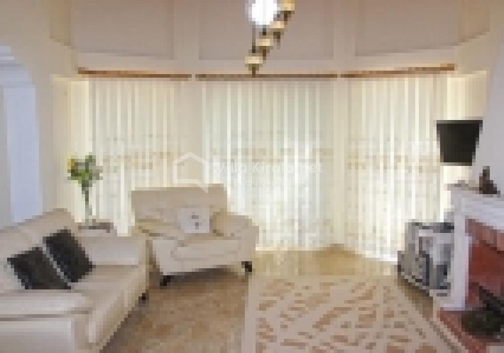 Villa Elwyn, toplam 180 m² kullanım alanına sahiptir ve 3 yatak odası, 2 banyo, geniş bir salon ve tam donanımlı açık mutfak ile 6 kişilik konaklama kapasitesi sunar. İç mekân tasarımında modern ve sade bir dekorasyon anlayışı benimsenmiştir. Oturma alanı konforlu koltuklarla donatılmış, şömine detayıyla sıcak bir atmosfer yaratılmıştır. Ayrıca evde LCD televizyon, uydu yayını, klima, çamaşır makinesi, bulaşık makinesi ve ücretsiz Wi-Fi gibi her ihtiyaca yönelik donanımlar mevcuttur.