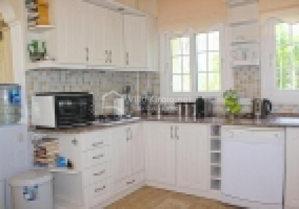 Mutfağı tam donanımlıdır; buzdolabı, fırın, ocak, mikrodalga ve yemek takımları gibi tüm mutfak gereçleri yer alır. İster içeride, ister teras bölümünde ailece yemeklerinizi hazırlayıp keyifle yiyebilirsiniz.