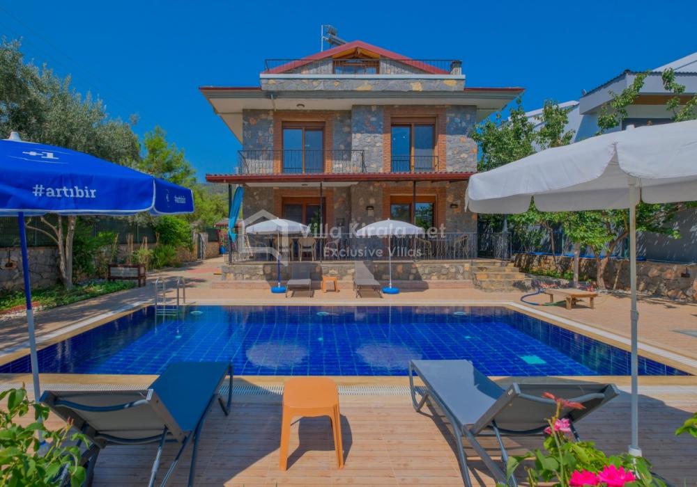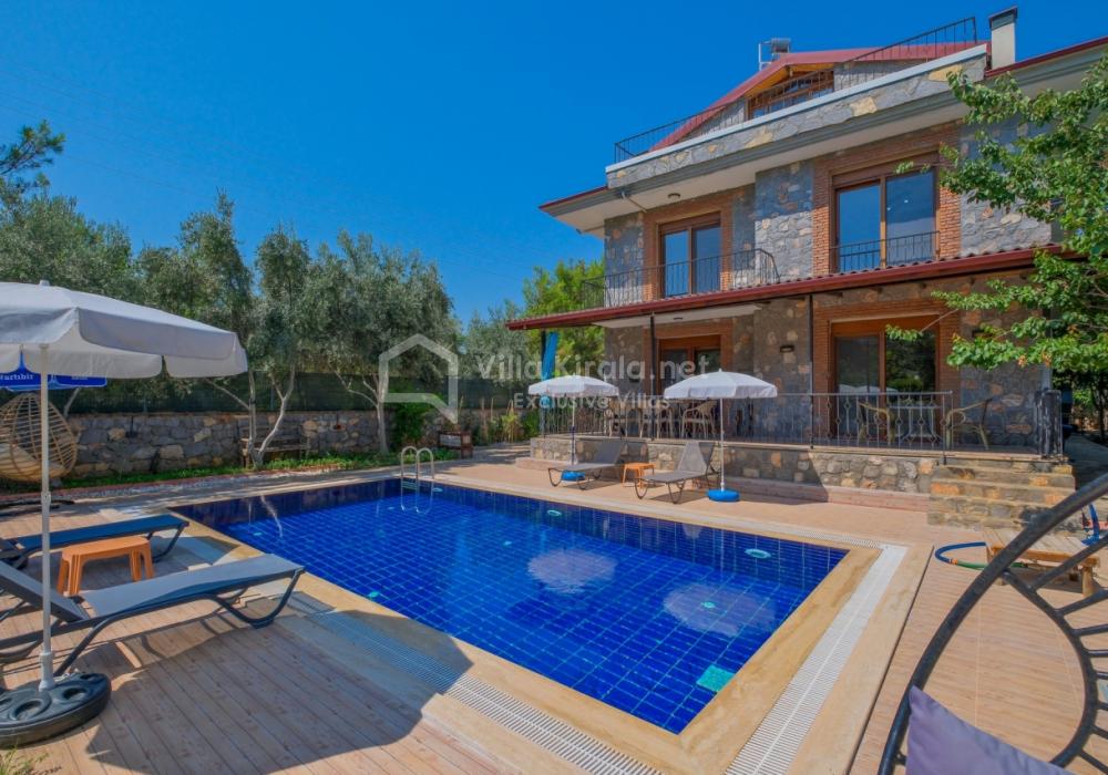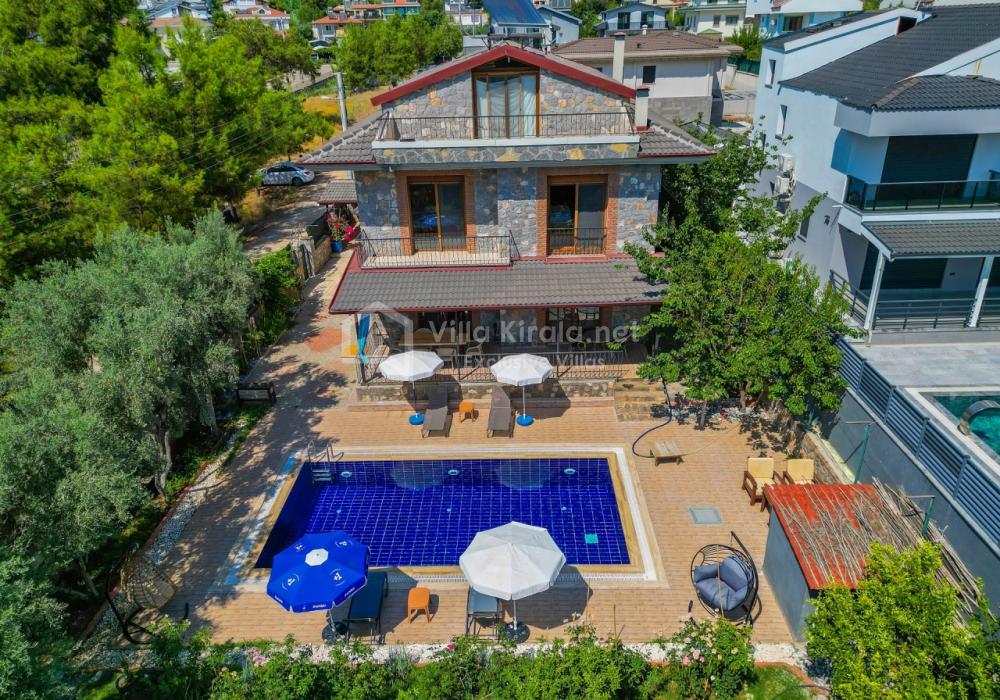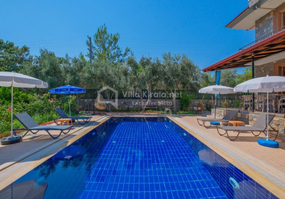 Fethiye'nin huzurlu Çiftlik semtinde yer alan villa, modern tasarımı ve özel havuzu ile geniş aileler ya da kalabalık gruplar için ideal bir konaklama sunmaktadır