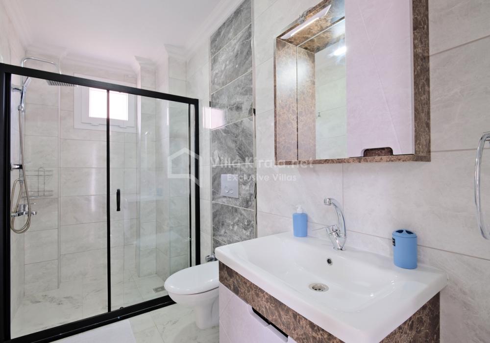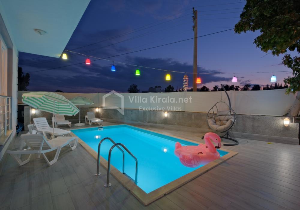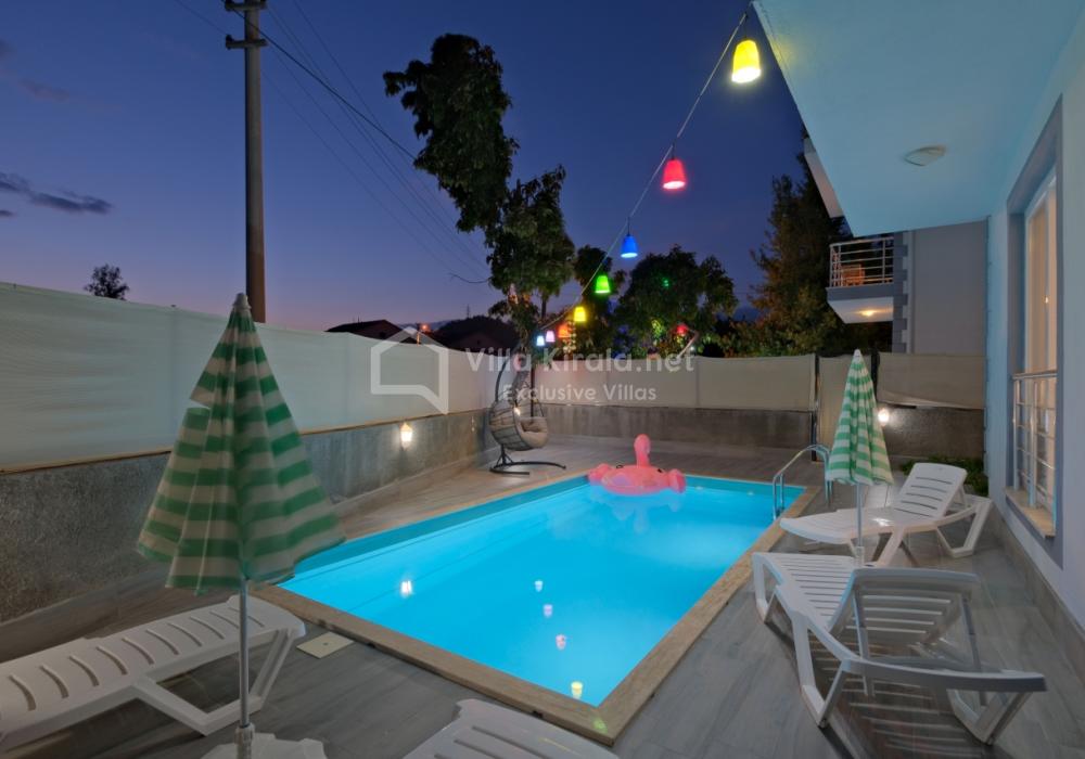 3 yatak odası ve 3 banyo/WC’ye sahip villada açık mutfak-salon ve havuz terasına doğrudan erişim bulunur. 3x6 metre ölçülerindeki özel havuz, korunaklı ve gözlerden uzaktır.