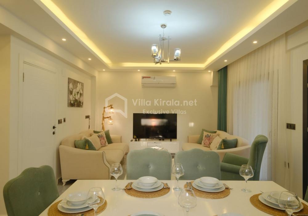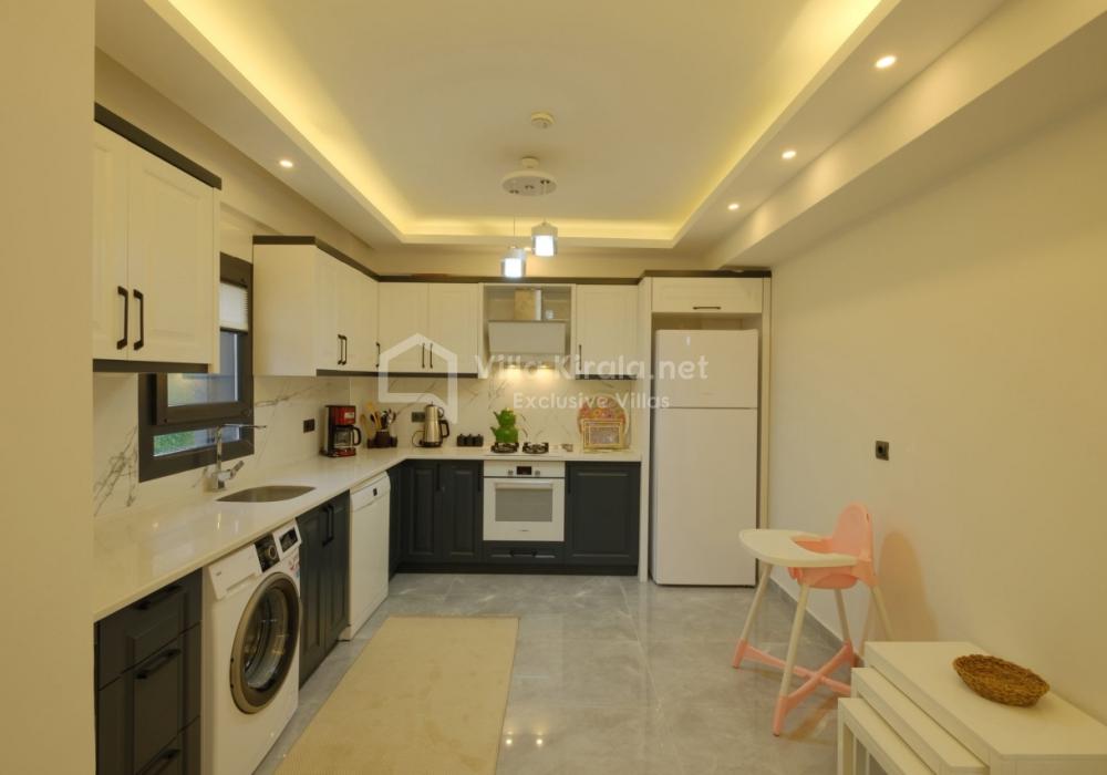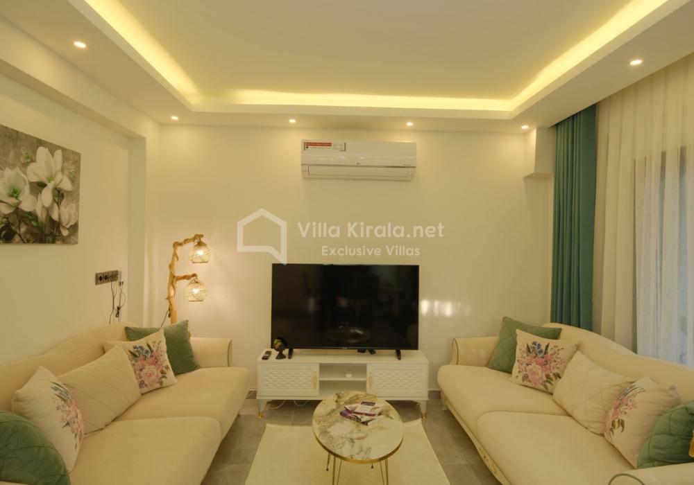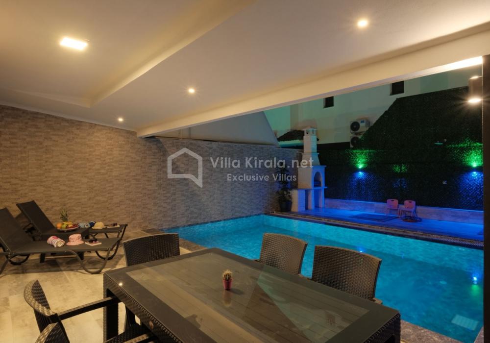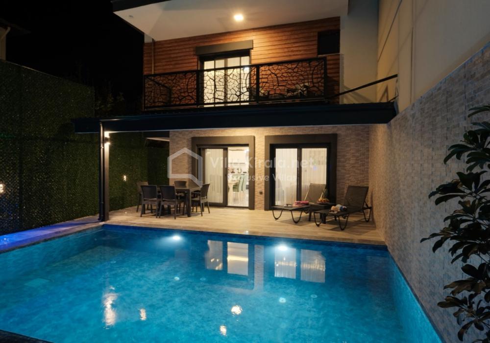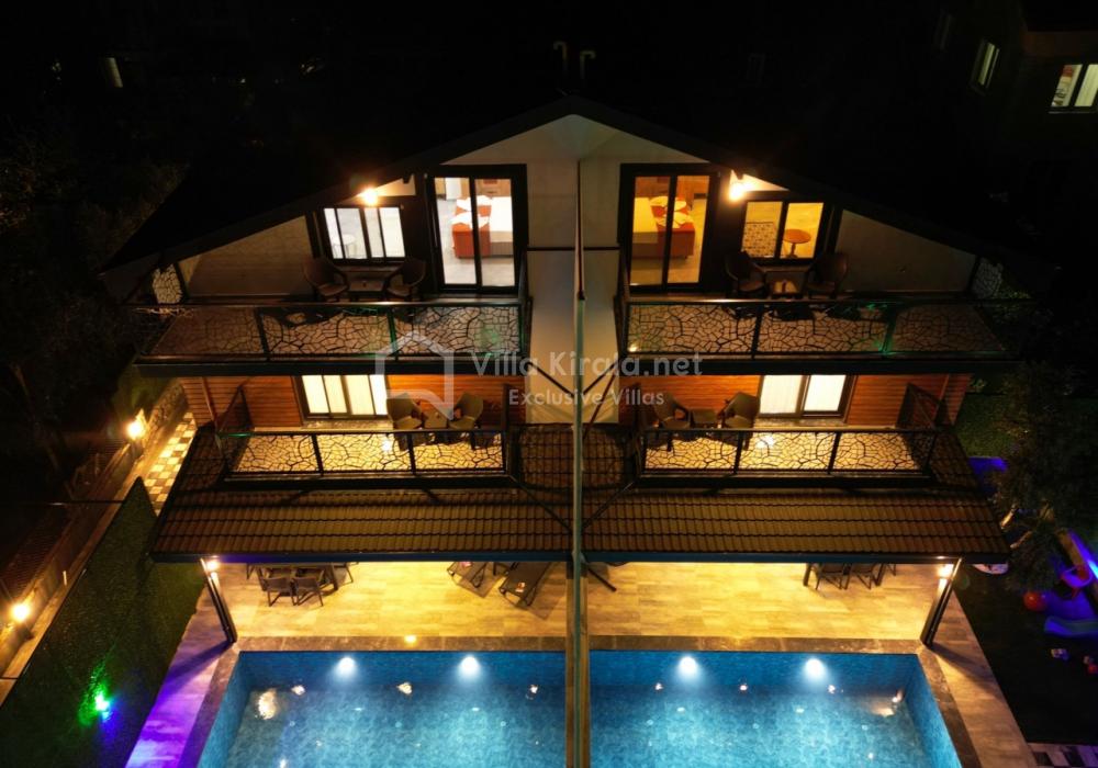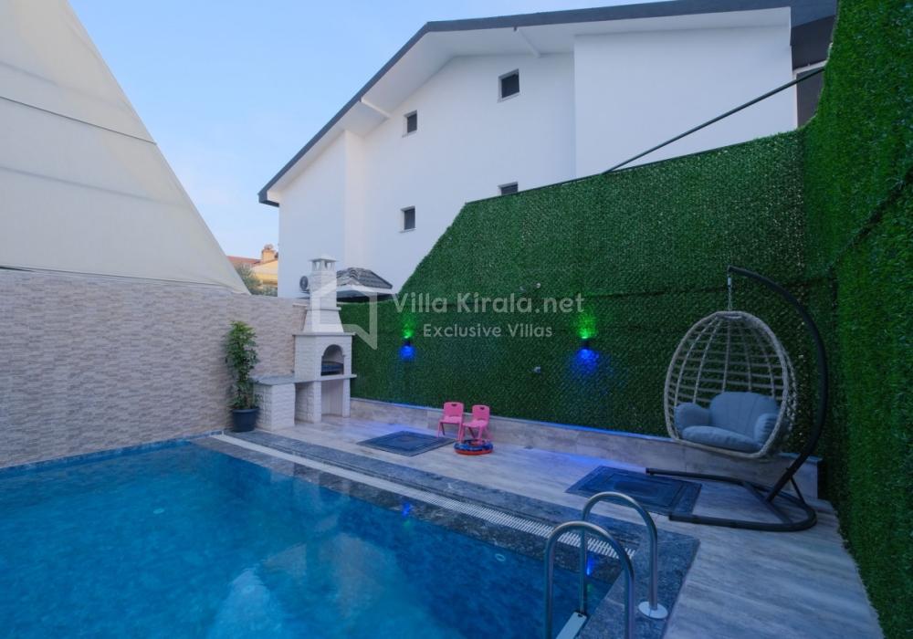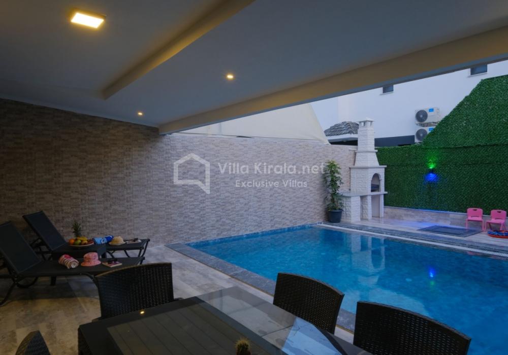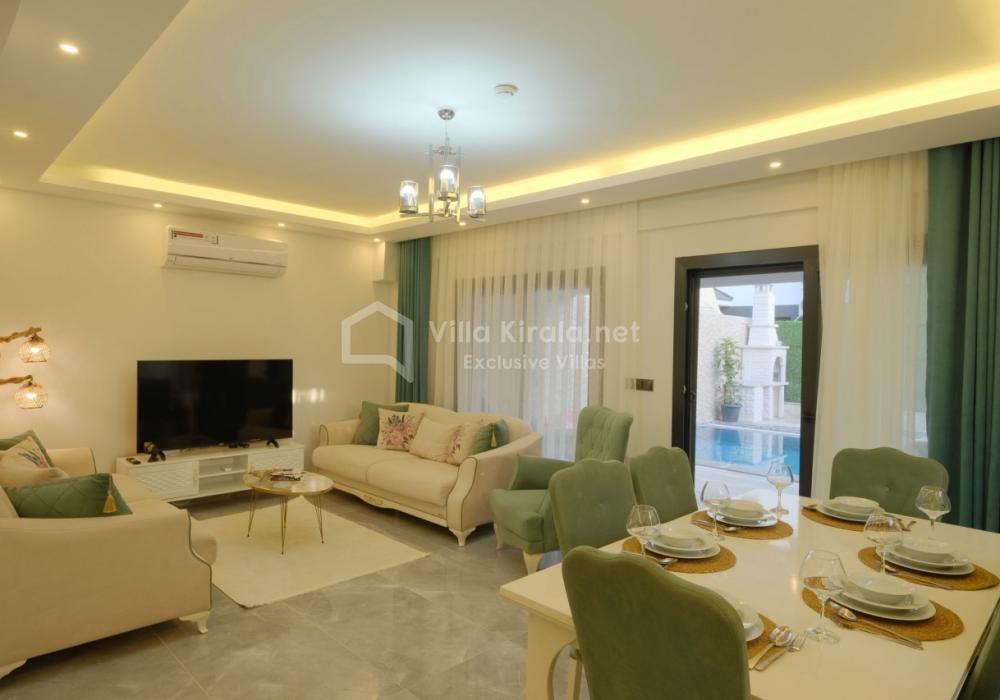 Merkezi noktalara kolay ulaşım imkânı sunan villada, sevdiklerinizle birlikte güvenli ve huzurlu bir tatil geçirebilirsiniz. Güneşin ve temiz havanın tadını çıkarabileceğiniz havuz terasında şezlong takımı, oturma grubu, salıncak ve barbekü alanı bulunmaktadır. Havuz terasına açılan ferah oturma odası ve açık mutfak, konforlu bir yaşam alanı sunmaktadır.