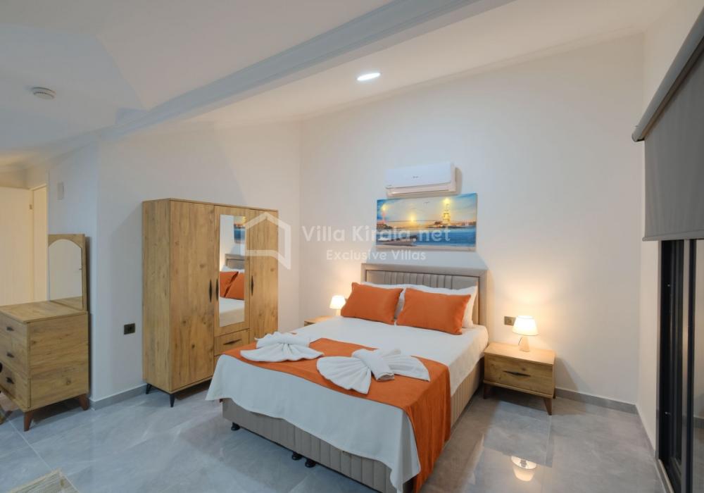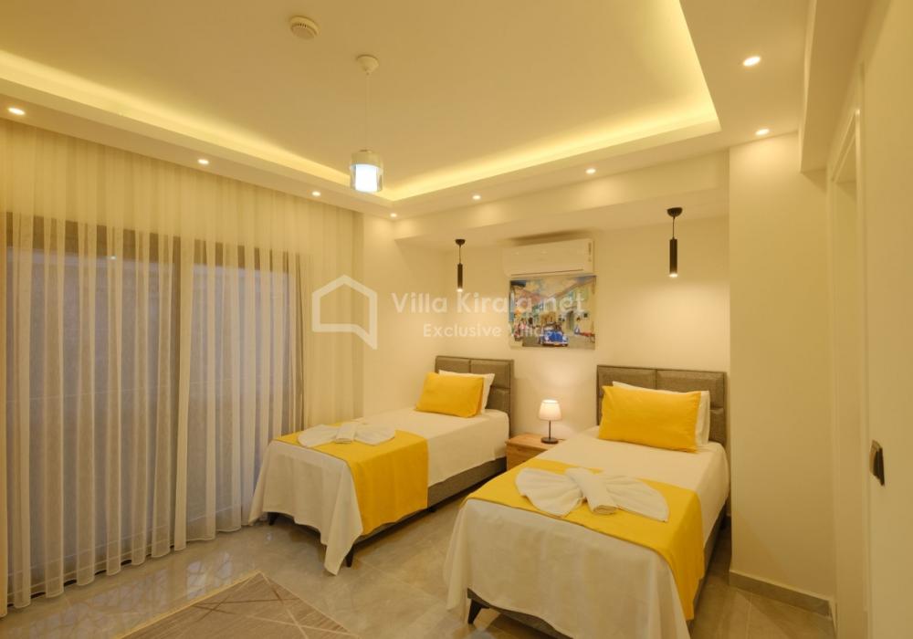 Villanın birinci yatak odasında çift kişilik yatak ve ebeveyn banyosu, ikinci yatak odasında çift kişilik yatak ve banyo, üçüncü yatak odasında ise iki tek kişilik yatak ve ebeveyn banyosu yer almaktadır.