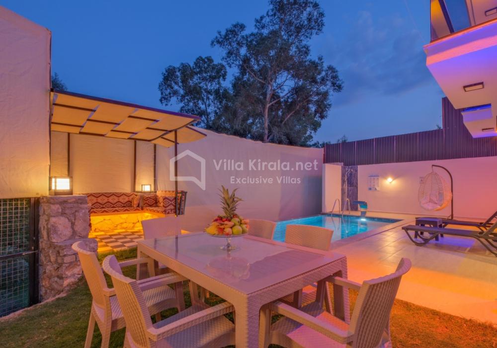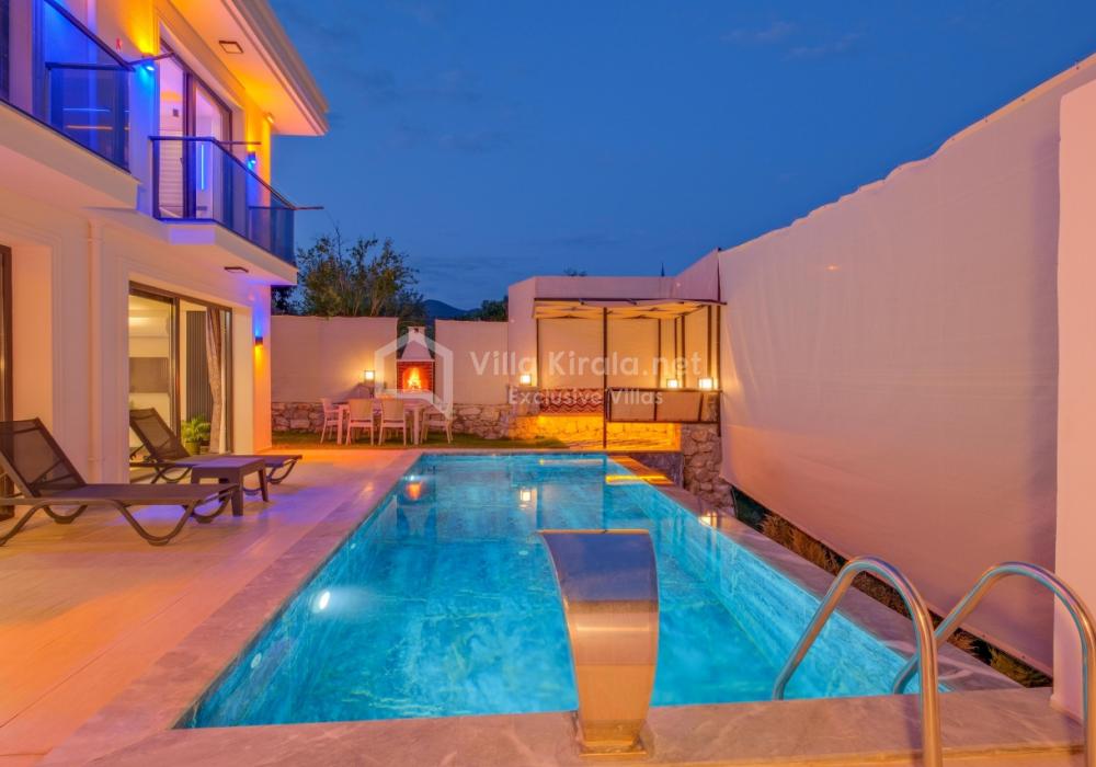 Villamızın özel yüzme havuzunda doyasıya yüzebilir, güneşin tadını çıkarabilirsiniz. Bahçe alanında kapasiteye uygun şezlong takımı, oturma grubu ve barbekü alanı bulunmaktadır. Havuz terasına açılan konforlu oturma odası ve tam donanımlı açık mutfak, tatilinizi daha keyifli hale getirir.