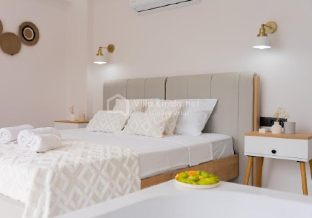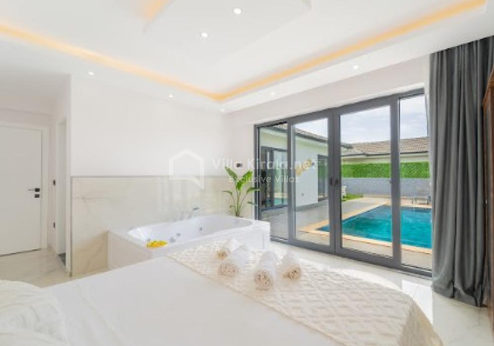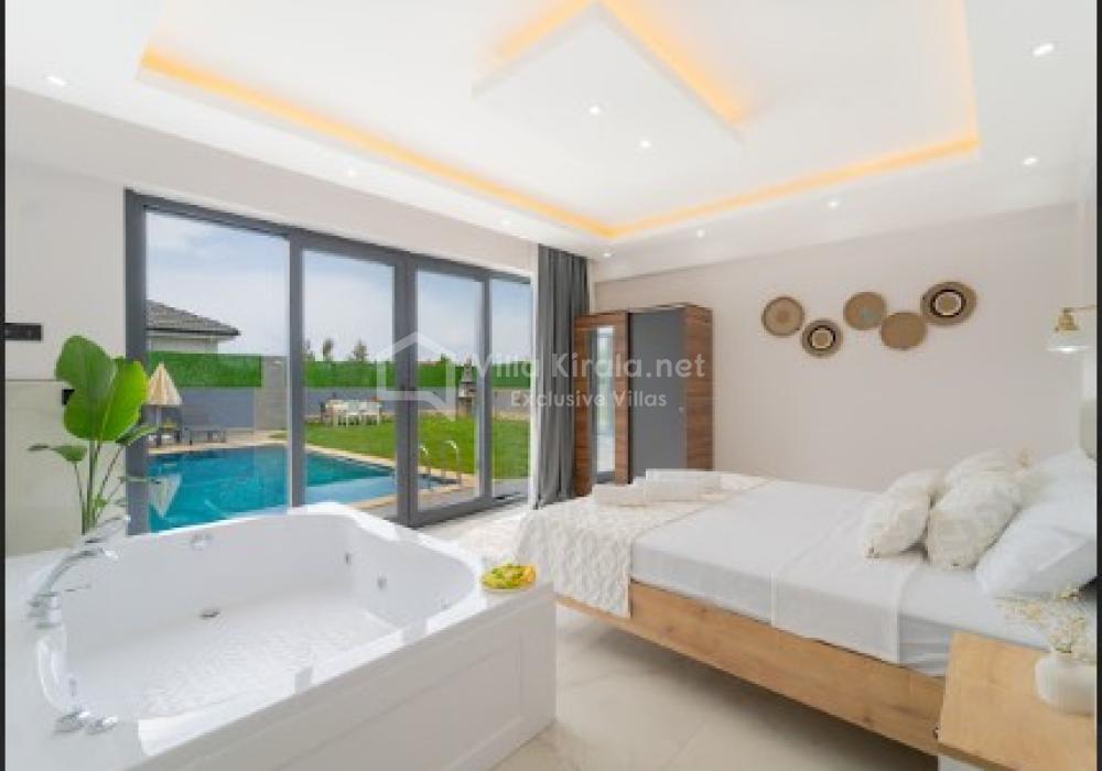 1 adet çift kişilik yatak, komodin, klima, giysi dolabı, jakuzi, özel banyo & WC ve havuz terasına direkt çıkış bulunmaktadır.