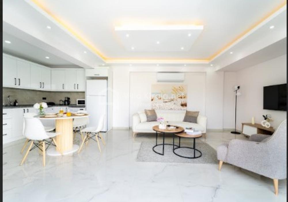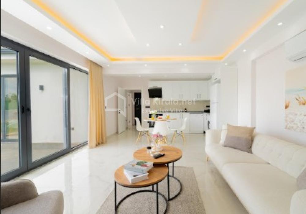 Modern ve konforlu oturma grubu, berjer, orta sehpa, TV, uydu alıcısı ve klima bulunmaktadır.
