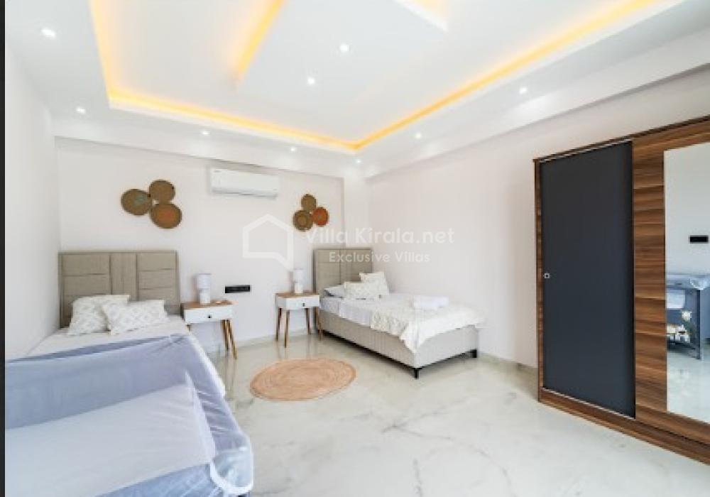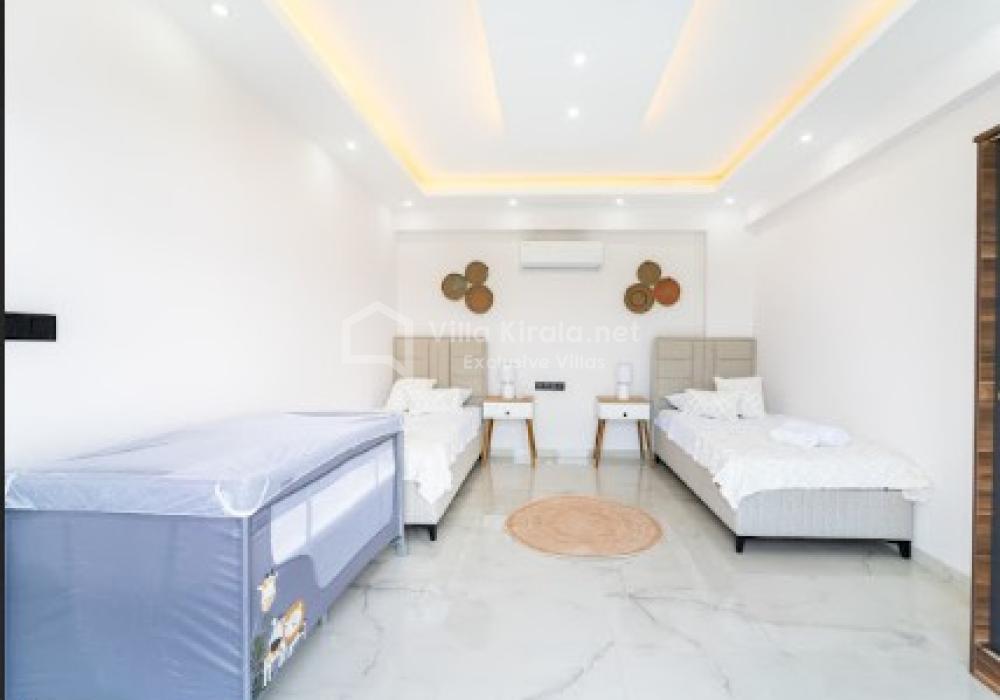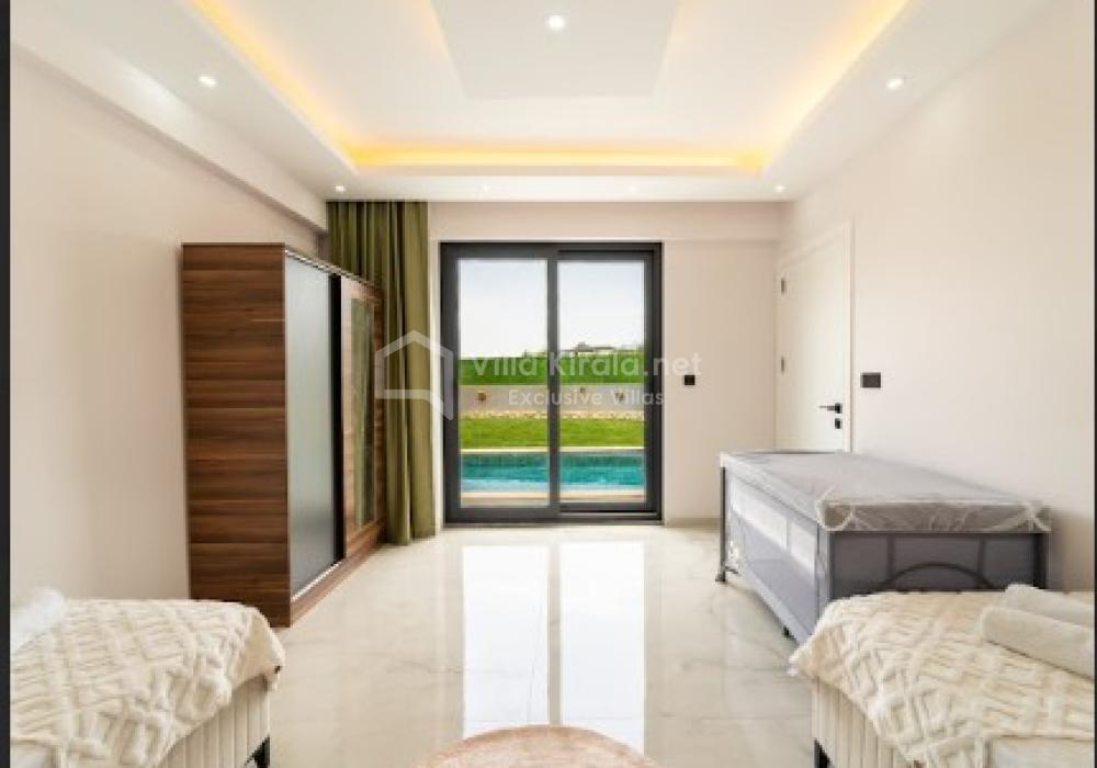 2 adet tek kişilik yatak, komodin, klima, giysi dolabı ve bebek yatağı bulunmaktadır. Bu odanın kullanımına ait ortak banyo & WC yer almakta olup, havuz terasına çıkış imkânı mevcuttur.