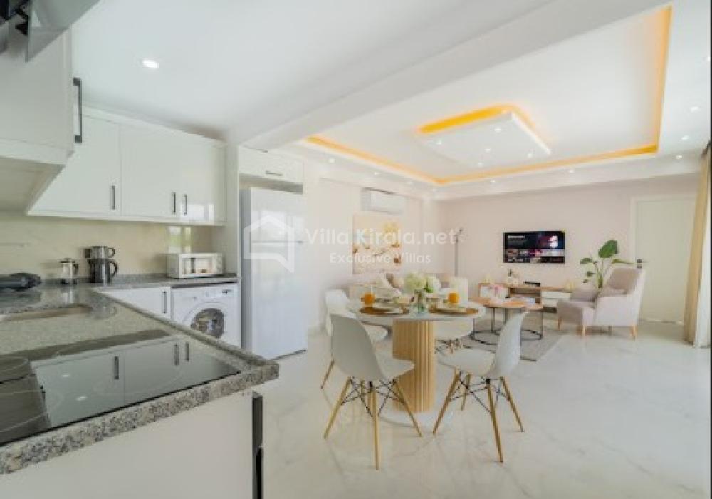 Tam donanımlı Amerikan mutfak içerisinde 4 kişilik yemek masası, mikrodalga fırın, çaycı, tost makinesi, bulaşık makinesi, çamaşır makinesi, ankastre 4’lü ocak, Türk kahve makinesi, buzdolabı, ankastre fırın, 4 kişilik yemek takımı, tencere-tava seti ve tüm mutfak gereçleri eksiksiz şekilde yer almaktadır.